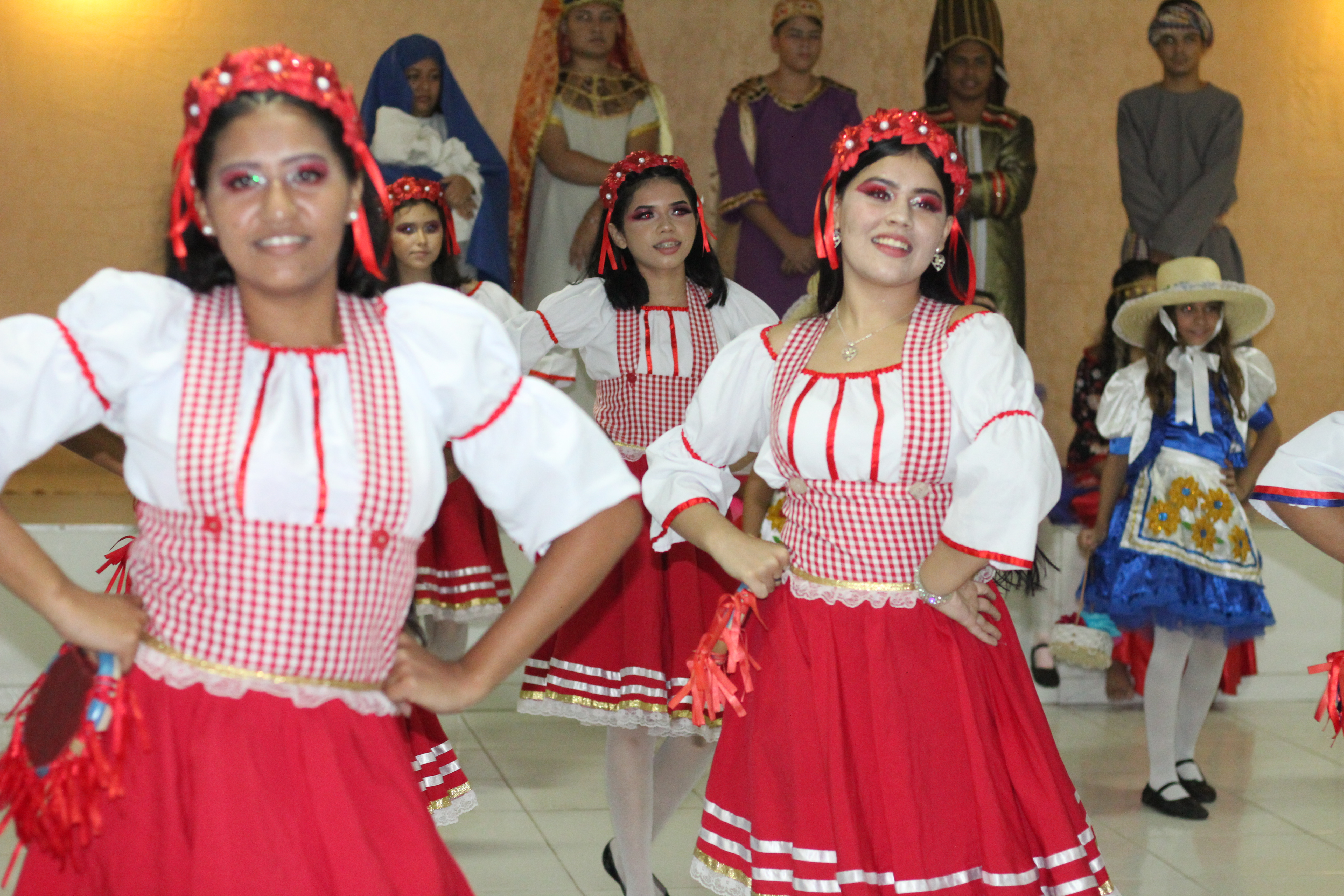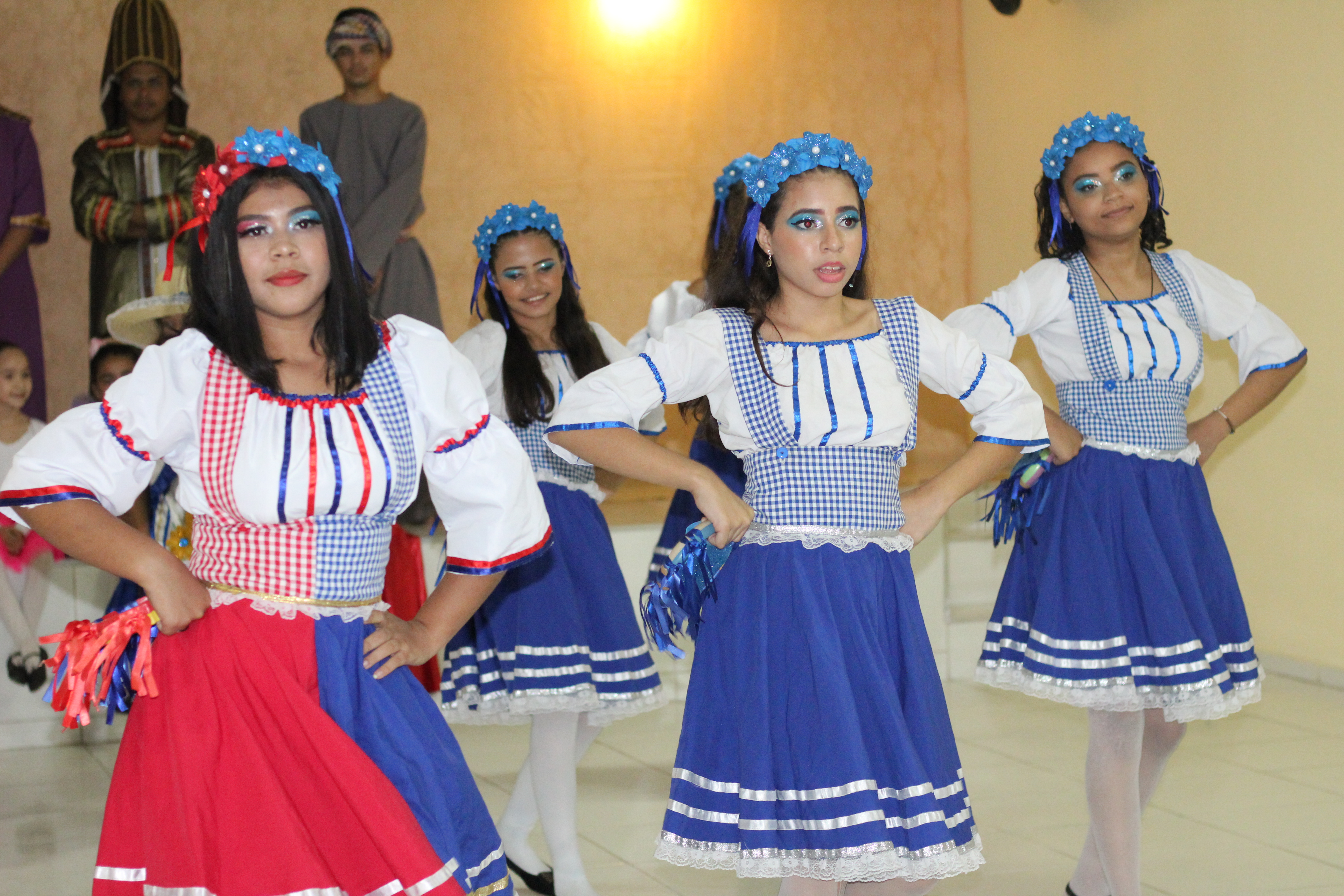 Aproximadamente 25 pessoas formam o nosso pastoril, entre dançarinas, atores e produção.